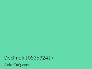 Decimal 105353241 Color is a light green color and the nearest color is Medium Aquamarine #66ddaa. Hex code #62dcab and RGB value is rgb(98,220,171). In RGB color space, this color is composed of 38% red, 86% green, 67% blue, In CMYK color space, this color is composed of 55% cyan, 0% magenta, 22% yellow , 14% black , In HSL color space, this color has a hue angle of 156° , 64% saturation and 62% lightness.