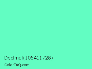 Decimal 105411728 Color is a light green color and the nearest color is Aquamarine #7fffd4. Hex code #62fdc2 and RGB value is rgb(98,253,194). In RGB color space, this color is composed of 38% red, 99% green, 76% blue, In CMYK color space, this color is composed of 61% cyan, 0% magenta, 23% yellow , 1% black , In HSL color space, this color has a hue angle of 157° , 97% saturation and 69% lightness.
