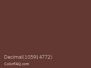 Decimal 105914772 Color is a dark red color and the nearest color is Buccaneer #622f30. Hex code #633732 and RGB value is rgb(99,55,50). In RGB color space, this color is composed of 39% red, 22% green, 20% blue, In CMYK color space, this color is composed of 0% cyan, 44% magenta, 49% yellow , 61% black , In HSL color space, this color has a hue angle of 6° , 33% saturation and 29% lightness.