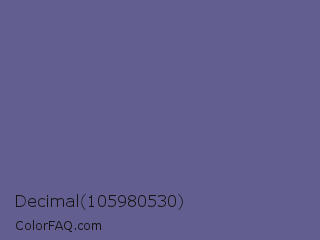 Decimal 105980530 Color is a normal indigo color and the nearest color is Dark Blue Gray #666699. Hex code #635e90 and RGB value is rgb(99,94,144). In RGB color space, this color is composed of 39% red, 37% green, 56% blue, In CMYK color space, this color is composed of 31% cyan, 35% magenta, 0% yellow , 44% black , In HSL color space, this color has a hue angle of 246° , 21% saturation and 47% lightness.