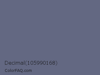 Decimal 105990168 Color is a normal blue color and the nearest color is Dolphin #646077. Hex code #636882 and RGB value is rgb(99,104,130). In RGB color space, this color is composed of 39% red, 41% green, 51% blue, In CMYK color space, this color is composed of 24% cyan, 20% magenta, 0% yellow , 49% black , In HSL color space, this color has a hue angle of 230° , 14% saturation and 45% lightness.