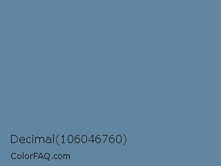 Decimal 106046760 Color is a normal blue color and the nearest color is Hoki #65869f. Hex code #6386a0 and RGB value is rgb(99,134,160). In RGB color space, this color is composed of 39% red, 53% green, 63% blue, In CMYK color space, this color is composed of 38% cyan, 16% magenta, 0% yellow , 37% black , In HSL color space, this color has a hue angle of 206° , 24% saturation and 51% lightness.