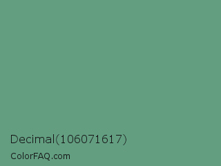 Decimal 106071617 Color is a normal green color and the nearest color is Shiny Shamrock #5fa778. Hex code #639e81 and RGB value is rgb(99,158,129). In RGB color space, this color is composed of 39% red, 62% green, 51% blue, In CMYK color space, this color is composed of 37% cyan, 0% magenta, 18% yellow , 38% black , In HSL color space, this color has a hue angle of 151° , 23% saturation and 50% lightness.
