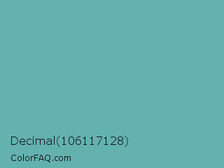 Decimal 106117128 Color is a normal cyan color and the nearest color is Tradewind #5fb3ac. Hex code #63b2b0 and RGB value is rgb(99,178,176). In RGB color space, this color is composed of 39% red, 70% green, 69% blue, In CMYK color space, this color is composed of 44% cyan, 0% magenta, 1% yellow , 30% black , In HSL color space, this color has a hue angle of 178° , 34% saturation and 54% lightness.