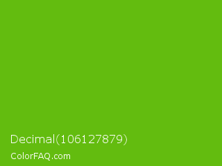 Decimal 106127879 Color is a normal green color and the nearest color is Lima #76bd17. Hex code #63bc0f and RGB value is rgb(99,188,15). In RGB color space, this color is composed of 39% red, 74% green, 6% blue, In CMYK color space, this color is composed of 47% cyan, 0% magenta, 92% yellow , 26% black , In HSL color space, this color has a hue angle of 91° , 85% saturation and 40% lightness.