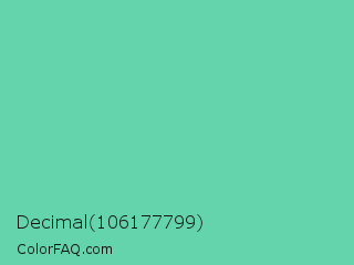Decimal 106177799 Color is a light green color and the nearest color is Medium Aquamarine #66ddaa. Hex code #63d4ab and RGB value is rgb(99,212,171). In RGB color space, this color is composed of 39% red, 83% green, 67% blue, In CMYK color space, this color is composed of 53% cyan, 0% magenta, 19% yellow , 17% black , In HSL color space, this color has a hue angle of 158° , 57% saturation and 61% lightness.