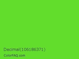 Decimal 106186371 Color is a normal green color and the nearest color is Harlequin Green #46cb18. Hex code #63dd2b and RGB value is rgb(99,221,43). In RGB color space, this color is composed of 39% red, 87% green, 17% blue, In CMYK color space, this color is composed of 55% cyan, 0% magenta, 81% yellow , 13% black , In HSL color space, this color has a hue angle of 101° , 72% saturation and 52% lightness.