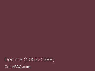 Decimal 106326388 Color is a dark red color and the nearest color is Wine Dregs #673147. Hex code #64343e and RGB value is rgb(100,52,62). In RGB color space, this color is composed of 39% red, 20% green, 24% blue, In CMYK color space, this color is composed of 0% cyan, 48% magenta, 38% yellow , 61% black , In HSL color space, this color has a hue angle of 348° , 32% saturation and 30% lightness.