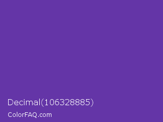 Decimal 106328885 Color is a normal violet color and the nearest color is Purple Heart #69359c. Hex code #6435a7 and RGB value is rgb(100,53,167). In RGB color space, this color is composed of 39% red, 21% green, 65% blue, In CMYK color space, this color is composed of 40% cyan, 68% magenta, 0% yellow , 35% black , In HSL color space, this color has a hue angle of 265° , 52% saturation and 43% lightness.