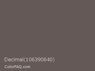 Decimal 106390640 Color is a normal red color and the nearest color is Zambezi #685558. Hex code #645956 and RGB value is rgb(100,89,86). In RGB color space, this color is composed of 39% red, 35% green, 34% blue, In CMYK color space, this color is composed of 0% cyan, 11% magenta, 14% yellow , 61% black , In HSL color space, this color has a hue angle of 13° , 8% saturation and 36% lightness.