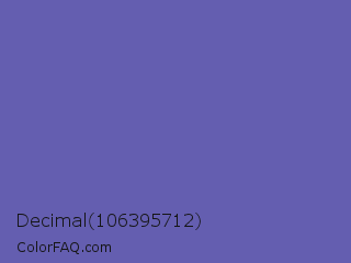 Decimal 106395712 Color is a normal indigo color and the nearest color is Scampi #675fa6. Hex code #645eb0 and RGB value is rgb(100,94,176). In RGB color space, this color is composed of 39% red, 37% green, 69% blue, In CMYK color space, this color is composed of 43% cyan, 47% magenta, 0% yellow , 31% black , In HSL color space, this color has a hue angle of 244° , 34% saturation and 53% lightness.