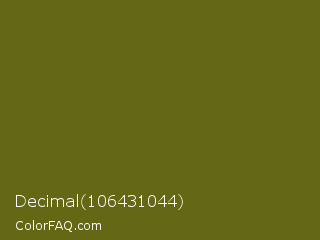 Decimal 106431044 Color is a dark yellow color and the nearest color is Himalaya #6a5d1b. Hex code #646814 and RGB value is rgb(100,104,20). In RGB color space, this color is composed of 39% red, 41% green, 8% blue, In CMYK color space, this color is composed of 4% cyan, 0% magenta, 81% yellow , 59% black , In HSL color space, this color has a hue angle of 63° , 68% saturation and 24% lightness.