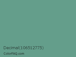Decimal 106512775 Color is a normal green color and the nearest color is Patina #639a8f. Hex code #649e8b and RGB value is rgb(100,158,139). In RGB color space, this color is composed of 39% red, 62% green, 55% blue, In CMYK color space, this color is composed of 37% cyan, 0% magenta, 12% yellow , 38% black , In HSL color space, this color has a hue angle of 160° , 23% saturation and 51% lightness.