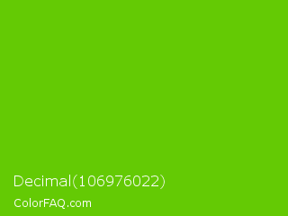 Decimal 106976022 Color is a normal green color and the nearest color is Lima #76bd17. Hex code #64ca04 and RGB value is rgb(100,202,4). In RGB color space, this color is composed of 39% red, 79% green, 2% blue, In CMYK color space, this color is composed of 50% cyan, 0% magenta, 98% yellow , 21% black , In HSL color space, this color has a hue angle of 91° , 96% saturation and 40% lightness.