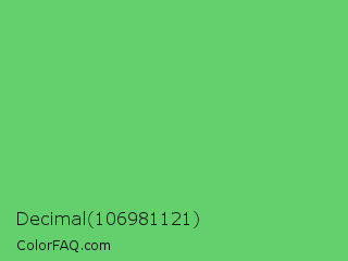 Decimal 106981121 Color is a normal green color and the nearest color is Mantis #74c365. Hex code #64cf6d and RGB value is rgb(100,207,109). In RGB color space, this color is composed of 39% red, 81% green, 43% blue, In CMYK color space, this color is composed of 52% cyan, 0% magenta, 47% yellow , 19% black , In HSL color space, this color has a hue angle of 125° , 53% saturation and 60% lightness.