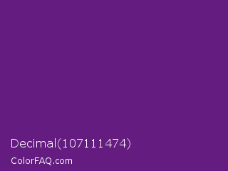 Decimal 107111474 Color is a normal purple color and the nearest color is Seance #731e8f. Hex code #651c80 and RGB value is rgb(101,28,128). In RGB color space, this color is composed of 40% red, 11% green, 50% blue, In CMYK color space, this color is composed of 21% cyan, 78% magenta, 0% yellow , 50% black , In HSL color space, this color has a hue angle of 284° , 64% saturation and 31% lightness.