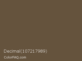 Decimal 107217989 Color is a normal orange color and the nearest color is Umber #635147. Hex code #65533d and RGB value is rgb(101,83,61). In RGB color space, this color is composed of 40% red, 33% green, 24% blue, In CMYK color space, this color is composed of 0% cyan, 18% magenta, 40% yellow , 60% black , In HSL color space, this color has a hue angle of 33° , 25% saturation and 32% lightness.