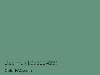 Decimal 107311433 Color is a normal green color and the nearest color is Viridian Green #678975. Hex code #65947d and RGB value is rgb(101,148,125). In RGB color space, this color is composed of 40% red, 58% green, 49% blue, In CMYK color space, this color is composed of 32% cyan, 0% magenta, 16% yellow , 42% black , In HSL color space, this color has a hue angle of 151° , 19% saturation and 49% lightness.