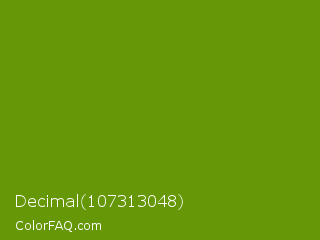 Decimal 107313048 Color is a normal green color and the nearest color is Limeade #6f9d02. Hex code #659706 and RGB value is rgb(101,151,6). In RGB color space, this color is composed of 40% red, 59% green, 2% blue, In CMYK color space, this color is composed of 33% cyan, 0% magenta, 96% yellow , 41% black , In HSL color space, this color has a hue angle of 81° , 92% saturation and 31% lightness.