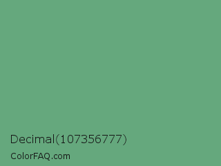 Decimal 107356777 Color is a normal green color and the nearest color is Shiny Shamrock #5fa778. Hex code #65a87d and RGB value is rgb(101,168,125). In RGB color space, this color is composed of 40% red, 66% green, 49% blue, In CMYK color space, this color is composed of 40% cyan, 0% magenta, 26% yellow , 34% black , In HSL color space, this color has a hue angle of 141° , 28% saturation and 53% lightness.