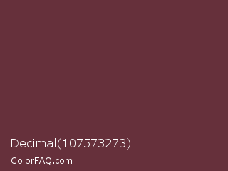Decimal 107573273 Color is a dark red color and the nearest color is Buccaneer #622f30. Hex code #66303b and RGB value is rgb(102,48,59). In RGB color space, this color is composed of 40% red, 19% green, 23% blue, In CMYK color space, this color is composed of 0% cyan, 53% magenta, 42% yellow , 60% black , In HSL color space, this color has a hue angle of 348° , 36% saturation and 29% lightness.