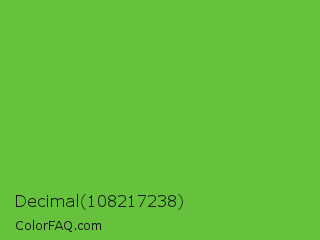 Decimal 108217238 Color is a normal green color and the nearest color is Green RYB #66b032. Hex code #66c23c and RGB value is rgb(102,194,60). In RGB color space, this color is composed of 40% red, 76% green, 24% blue, In CMYK color space, this color is composed of 47% cyan, 0% magenta, 69% yellow , 24% black , In HSL color space, this color has a hue angle of 101° , 53% saturation and 50% lightness.