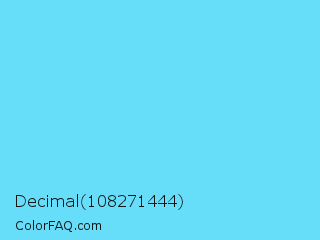 Decimal 108271444 Color is a light cyan color and the nearest color is Turquoise Blue #6cdae7. Hex code #66defa and RGB value is rgb(102,222,250). In RGB color space, this color is composed of 40% red, 87% green, 98% blue, In CMYK color space, this color is composed of 59% cyan, 11% magenta, 0% yellow , 2% black , In HSL color space, this color has a hue angle of 191° , 94% saturation and 69% lightness.