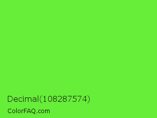 Decimal 108287574 Color is a normal green color and the nearest color is Spring Frost #87ff2a. Hex code #66ee38 and RGB value is rgb(102,238,56). In RGB color space, this color is composed of 40% red, 93% green, 22% blue, In CMYK color space, this color is composed of 57% cyan, 0% magenta, 76% yellow , 7% black , In HSL color space, this color has a hue angle of 105° , 84% saturation and 58% lightness.