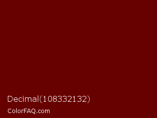 Decimal 108332132 Color is a very dark red color and the nearest color is Lonestar #6d0101. Hex code #670100 and RGB value is rgb(103,1,0). In RGB color space, this color is composed of 40% red, 0% green, 0% blue, In CMYK color space, this color is composed of 0% cyan, 99% magenta, 100% yellow , 60% black , In HSL color space, this color has a hue angle of 1° , 100% saturation and 20% lightness.