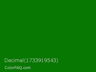 Decimal 1733919543 Color is a dark green color and the nearest color is Office Green #008000. Hex code #077801 and RGB value is rgb(7,120,1). In RGB color space, this color is composed of 3% red, 47% green, 0% blue, In CMYK color space, this color is composed of 94% cyan, 0% magenta, 99% yellow , 53% black , In HSL color space, this color has a hue angle of 117° , 98% saturation and 24% lightness.