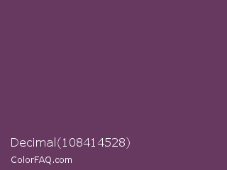 Decimal 108414528 Color is a normal magenta color and the nearest color is Ube Halaya #663854. Hex code #673860 and RGB value is rgb(103,56,96). In RGB color space, this color is composed of 40% red, 22% green, 38% blue, In CMYK color space, this color is composed of 0% cyan, 46% magenta, 7% yellow , 60% black , In HSL color space, this color has a hue angle of 309° , 30% saturation and 31% lightness.