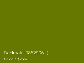 Decimal 108529961 Color is a dark yellow color and the nearest color is Bronze Yellow #737000. Hex code #677801 and RGB value is rgb(103,120,1). In RGB color space, this color is composed of 40% red, 47% green, 0% blue, In CMYK color space, this color is composed of 14% cyan, 0% magenta, 99% yellow , 53% black , In HSL color space, this color has a hue angle of 69° , 98% saturation and 24% lightness.