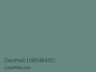 Decimal 108548435 Color is a normal cyan color and the nearest color is Aurometalsaurus #6e7f80. Hex code #678881 and RGB value is rgb(103,136,129). In RGB color space, this color is composed of 40% red, 53% green, 51% blue, In CMYK color space, this color is composed of 24% cyan, 0% magenta, 5% yellow , 47% black , In HSL color space, this color has a hue angle of 167° , 14% saturation and 47% lightness.