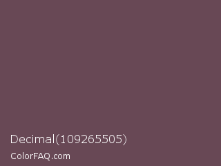 Decimal 109265505 Color is a normal rose color and the nearest color is Deep Tuscan Red #66424d. Hex code #684855 and RGB value is rgb(104,72,85). In RGB color space, this color is composed of 41% red, 28% green, 33% blue, In CMYK color space, this color is composed of 0% cyan, 31% magenta, 18% yellow , 59% black , In HSL color space, this color has a hue angle of 336° , 18% saturation and 35% lightness.