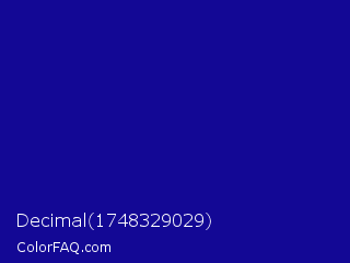 Decimal 1748329029 Color is a normal indigo color and the nearest color is Ultramarine #120a8f. Hex code #130895 and RGB value is rgb(19,8,149). In RGB color space, this color is composed of 7% red, 3% green, 58% blue, In CMYK color space, this color is composed of 87% cyan, 95% magenta, 0% yellow , 42% black , In HSL color space, this color has a hue angle of 245° , 90% saturation and 31% lightness.
