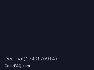 Decimal 1749176914 Color is a very dark blue color and the nearest color is Mirage #161928. Hex code #141624 and RGB value is rgb(20,22,36). In RGB color space, this color is composed of 8% red, 9% green, 14% blue, In CMYK color space, this color is composed of 44% cyan, 39% magenta, 0% yellow , 86% black , In HSL color space, this color has a hue angle of 233° , 29% saturation and 11% lightness.