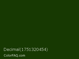 Decimal 1751320454 Color is a very dark green color and the nearest color is Palm Leaf #19330e. Hex code #173902 and RGB value is rgb(23,57,2). In RGB color space, this color is composed of 9% red, 22% green, 1% blue, In CMYK color space, this color is composed of 60% cyan, 0% magenta, 96% yellow , 78% black , In HSL color space, this color has a hue angle of 97° , 93% saturation and 12% lightness.