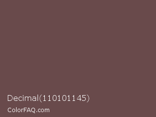 Decimal 110101145 Color is a normal red color and the nearest color is Medium Taupe #674c47. Hex code #694a4b and RGB value is rgb(105,74,75). In RGB color space, this color is composed of 41% red, 29% green, 29% blue, In CMYK color space, this color is composed of 0% cyan, 30% magenta, 29% yellow , 59% black , In HSL color space, this color has a hue angle of 358° , 17% saturation and 35% lightness.