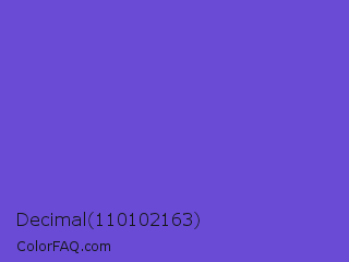 Decimal 110102163 Color is a normal indigo color and the nearest color is Majorelle Blue #6050dc. Hex code #694bd5 and RGB value is rgb(105,75,213). In RGB color space, this color is composed of 41% red, 29% green, 84% blue, In CMYK color space, this color is composed of 51% cyan, 65% magenta, 0% yellow , 16% black , In HSL color space, this color has a hue angle of 253° , 62% saturation and 56% lightness.