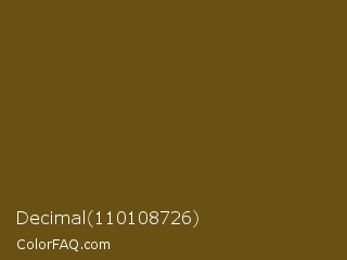 Decimal 110108726 Color is a dark orange color and the nearest color is West Coast #625119. Hex code #695114 and RGB value is rgb(105,81,20). In RGB color space, this color is composed of 41% red, 32% green, 8% blue, In CMYK color space, this color is composed of 0% cyan, 23% magenta, 81% yellow , 59% black , In HSL color space, this color has a hue angle of 43° , 68% saturation and 25% lightness.