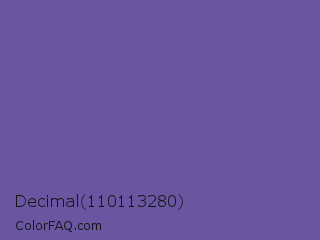 Decimal 110113280 Color is a normal indigo color and the nearest color is Butterfly Bush #624e9a. Hex code #6955a0 and RGB value is rgb(105,85,160). In RGB color space, this color is composed of 41% red, 33% green, 63% blue, In CMYK color space, this color is composed of 34% cyan, 47% magenta, 0% yellow , 37% black , In HSL color space, this color has a hue angle of 256° , 31% saturation and 48% lightness.