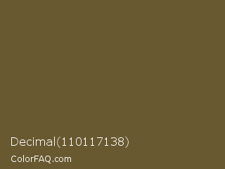 Decimal 110117138 Color is a dark orange color and the nearest color is Costa Del Sol #615d30. Hex code #695930 and RGB value is rgb(105,89,48). In RGB color space, this color is composed of 41% red, 35% green, 19% blue, In CMYK color space, this color is composed of 0% cyan, 15% magenta, 54% yellow , 59% black , In HSL color space, this color has a hue angle of 43° , 37% saturation and 30% lightness.