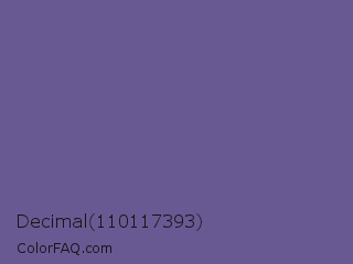Decimal 110117393 Color is a normal indigo color and the nearest color is Dark Lavender #734f96. Hex code #695993 and RGB value is rgb(105,89,147). In RGB color space, this color is composed of 41% red, 35% green, 58% blue, In CMYK color space, this color is composed of 29% cyan, 39% magenta, 0% yellow , 42% black , In HSL color space, this color has a hue angle of 257° , 25% saturation and 46% lightness.
