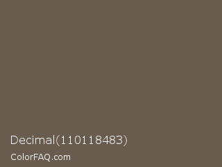 Decimal 110118483 Color is a normal orange color and the nearest color is Soya Bean #6a6051. Hex code #695b4d and RGB value is rgb(105,91,77). In RGB color space, this color is composed of 41% red, 36% green, 30% blue, In CMYK color space, this color is composed of 0% cyan, 13% magenta, 27% yellow , 59% black , In HSL color space, this color has a hue angle of 30° , 15% saturation and 36% lightness.