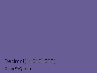 Decimal 110121527 Color is a normal indigo color and the nearest color is Dark Blue Gray #666699. Hex code #695d95 and RGB value is rgb(105,93,149). In RGB color space, this color is composed of 41% red, 36% green, 58% blue, In CMYK color space, this color is composed of 30% cyan, 38% magenta, 0% yellow , 42% black , In HSL color space, this color has a hue angle of 253° , 23% saturation and 47% lightness.