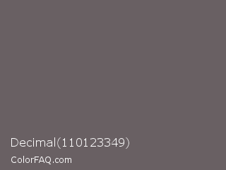 Decimal 110123349 Color is a normal rose color and the nearest color is Scorpion #695f62. Hex code #696063 and RGB value is rgb(105,96,99). In RGB color space, this color is composed of 41% red, 38% green, 39% blue, In CMYK color space, this color is composed of 0% cyan, 9% magenta, 6% yellow , 59% black , In HSL color space, this color has a hue angle of 340° , 4% saturation and 39% lightness.