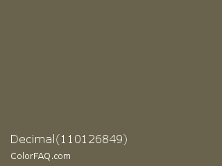 Decimal 110126849 Color is a normal yellow color and the nearest color is Soya Bean #6a6051. Hex code #69634d and RGB value is rgb(105,99,77). In RGB color space, this color is composed of 41% red, 39% green, 30% blue, In CMYK color space, this color is composed of 0% cyan, 6% magenta, 27% yellow , 59% black , In HSL color space, this color has a hue angle of 47° , 15% saturation and 36% lightness.
