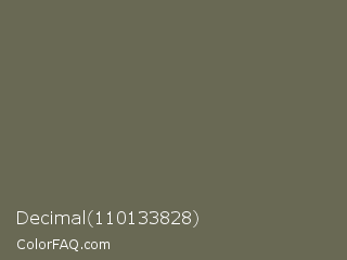 Decimal 110133828 Color is a normal yellow color and the nearest color is Siam #646a54. Hex code #696954 and RGB value is rgb(105,105,84). In RGB color space, this color is composed of 41% red, 41% green, 33% blue, In CMYK color space, this color is composed of 0% cyan, 0% magenta, 20% yellow , 59% black , In HSL color space, this color has a hue angle of 60° , 11% saturation and 37% lightness.