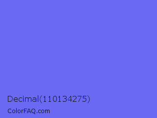 Decimal 110134275 Color is a light blue color and the nearest color is Very Light Blue #6666ff. Hex code #6969f3 and RGB value is rgb(105,105,243). In RGB color space, this color is composed of 41% red, 41% green, 95% blue, In CMYK color space, this color is composed of 57% cyan, 57% magenta, 0% yellow , 5% black , In HSL color space, this color has a hue angle of 240° , 85% saturation and 68% lightness.