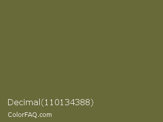 Decimal 110134388 Color is a normal yellow color and the nearest color is Yellow Metal #716338. Hex code #696a3a and RGB value is rgb(105,106,58). In RGB color space, this color is composed of 41% red, 42% green, 23% blue, In CMYK color space, this color is composed of 1% cyan, 0% magenta, 45% yellow , 58% black , In HSL color space, this color has a hue angle of 61° , 29% saturation and 32% lightness.